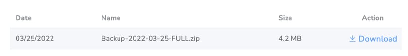 Step 5: Once the Backup is completed you will receive an email and the backup file will appear here for you to download.