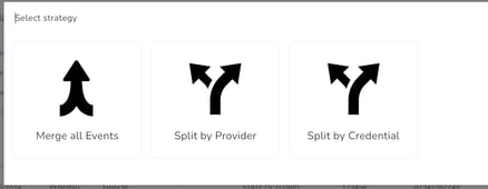 Step 12- Select Strategy: Merge all events, Split by Provider or Split by credential.