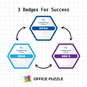 The Trust Badge system provides transparency for website visitors, showcasing how we actively monitor and maintain compliance with HIPAA and other essential regulatory frameworks. The active date stamping ensures that at any point in time, our monitoring is up-to-date and our commitment to compliance is ongoing. This badge is a visible emblem of our commitment to maintaining compliance with key regulations, including HIPAA (Health Insurance Portability and Accountability Act), OSHA (Occupational Safety and Health Administration), and SOC 2 (System and Organization Controls 2), offering website visitors clear assurance that Office Puzzle operates with stringent compliance standards, further enhanced by active date stamping.