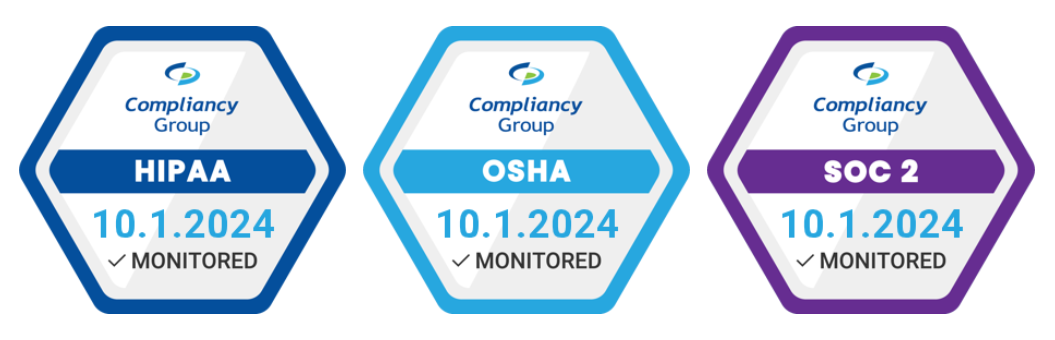 Our team is committed to making compliance a seamless part of our operations. The HIPAA Trust Badge, along with OSHA and SOC 2 badges, solidifies our place as a trusted provider in the industry. Through our partnership with Compliancy Group, we efficiently manage compliance with various regulatory requirements, ensuring that updates or changes in regulations are quickly integrated into our processes, allowing us to focus on what we do best—providing innovative software solutions for therapy providers.