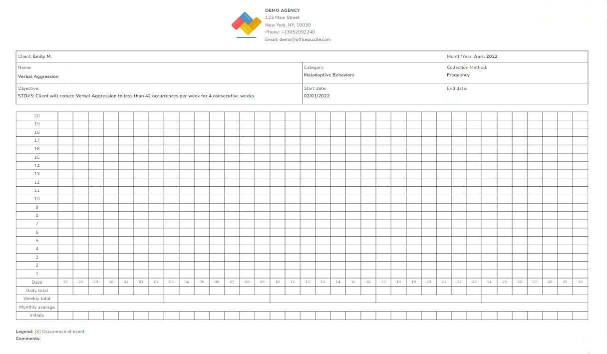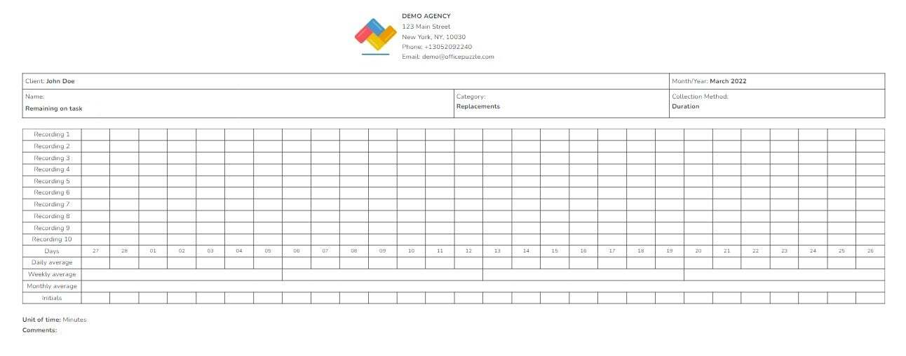 From our datasheets, you will be able to add the data collected for your client, as you would do it from a sheet of paper for the entire month of work.