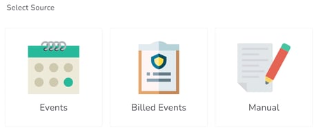 Step 4: Choose the source of the invoice: Events, Billed Events, or Manual.